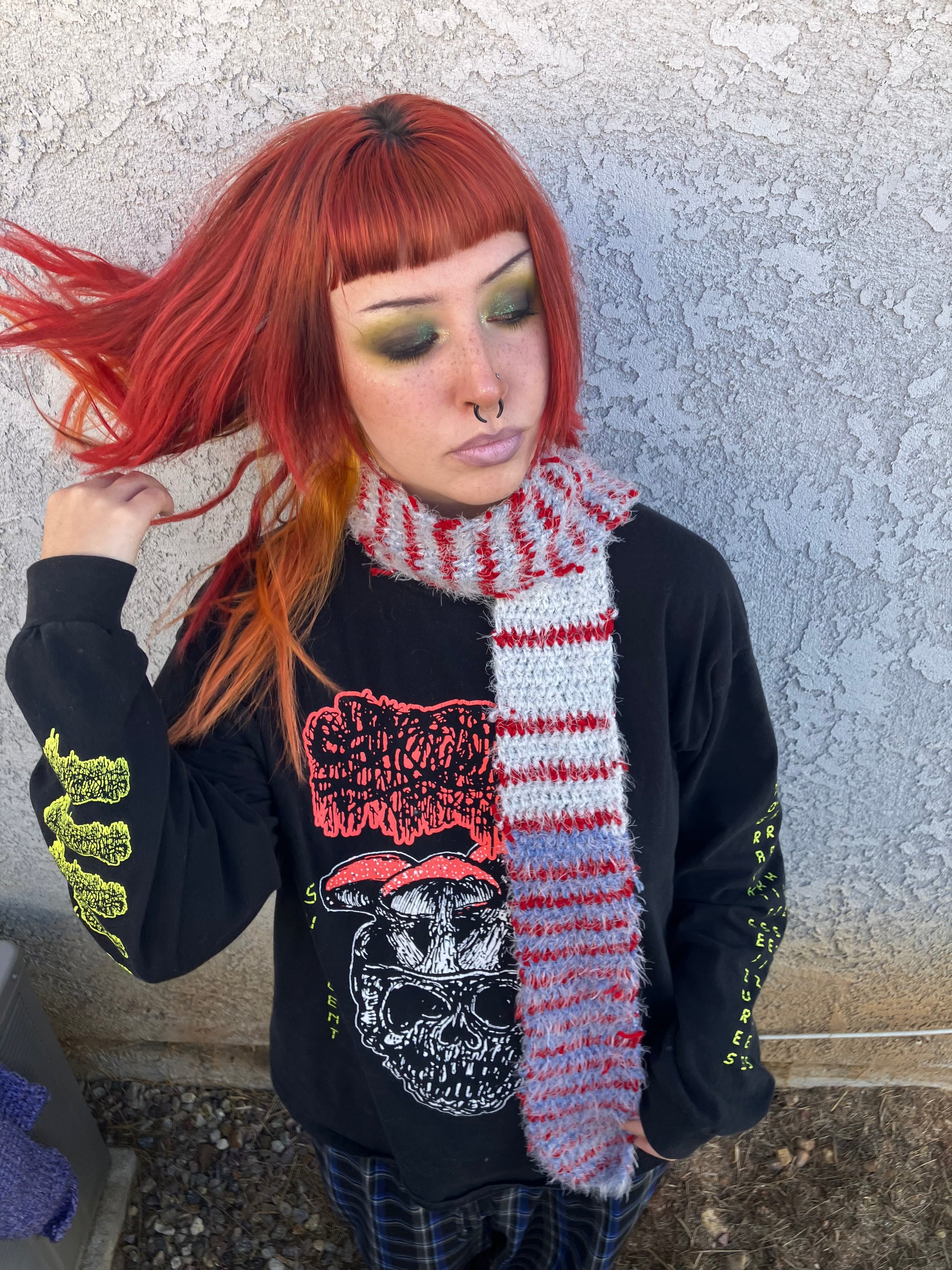 Crotchet striped scarf. %58 Acrylic yarn, %42 nylon.